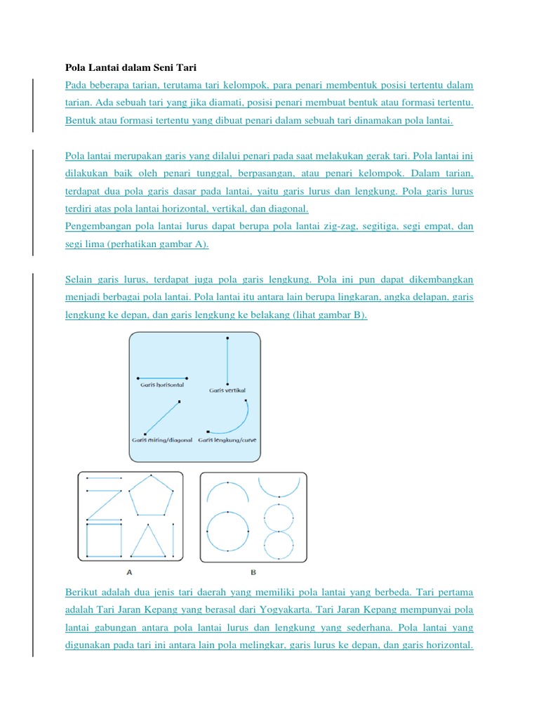 Pola lantai ini banyak digunakan pada tari. SOAL LATIHAN SBK KELAS 8 POLA LANTAI TARI TRADISIONAL DRAFT. Pola lantai adalah garis yang dilalui oleh penari saat melakukan gerakan tari.