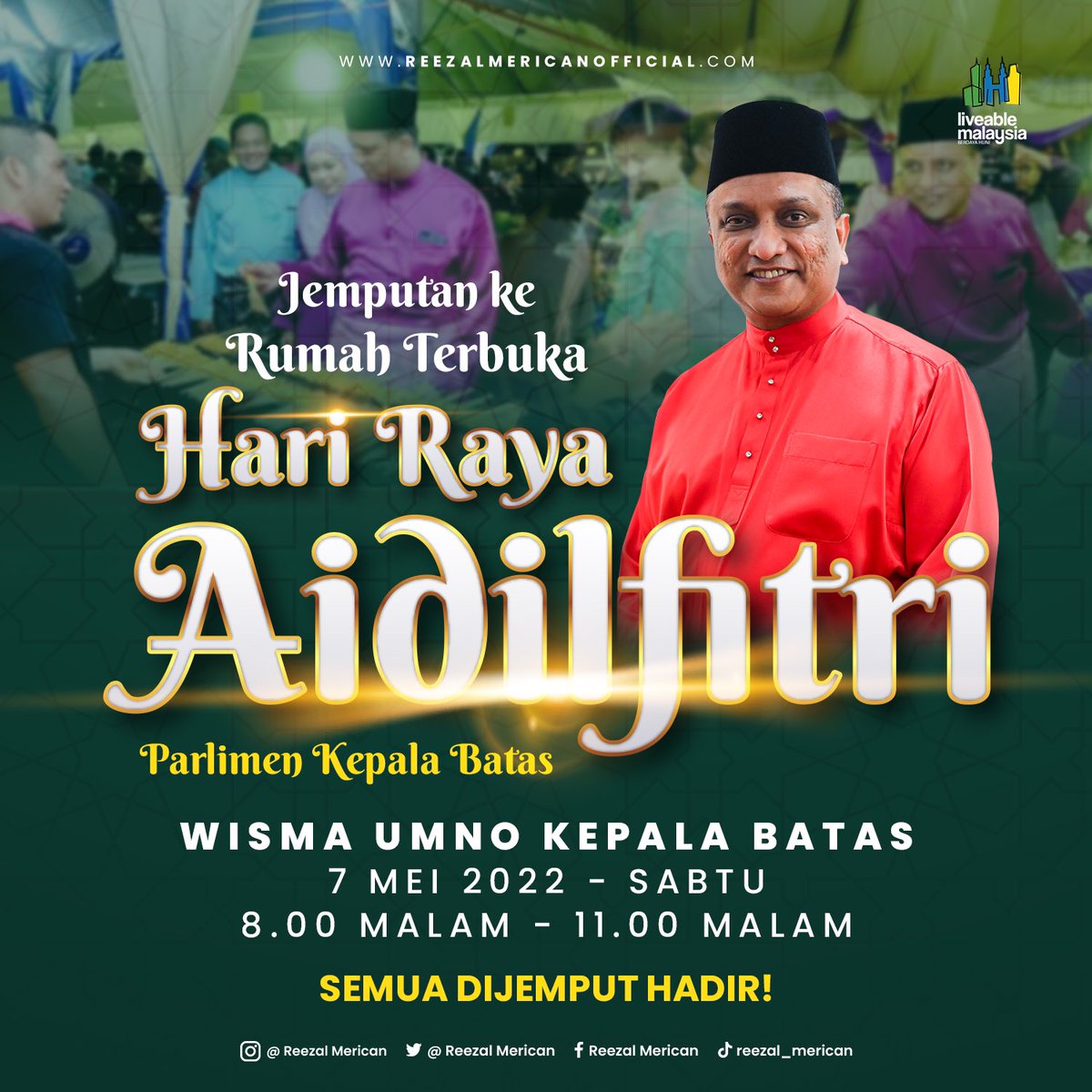 Reezal Merican S Tweet Insya Allah Esok 7 Mei 2022 Sabtu Majlis Rumah Terbuka Hari Raya Aidilfitri Parlimen Kepala Batas Bertempat Di Perkarangan Wisma Umno Kepala Batas Rumah Terbuka Hari Raya Aidilfitri